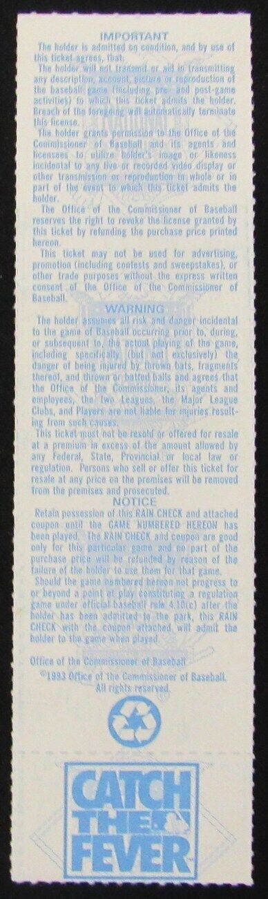 1993 NLCS Game 2 Phillies vs. Braves Ticket Stub
