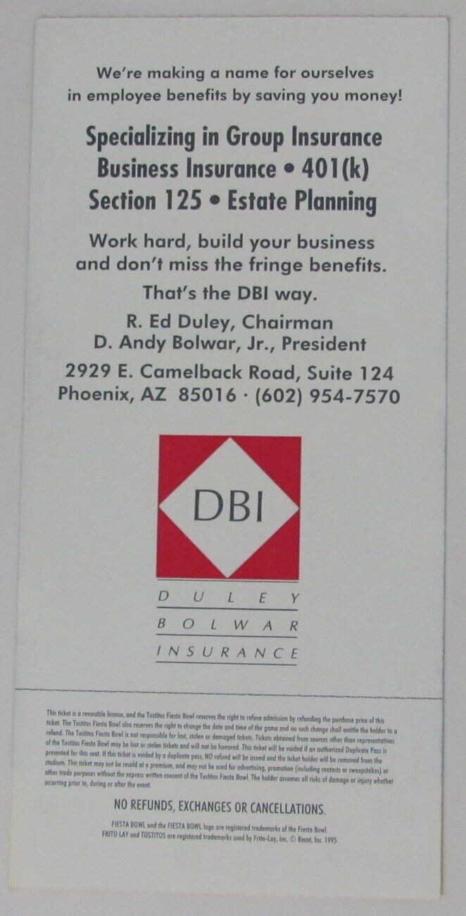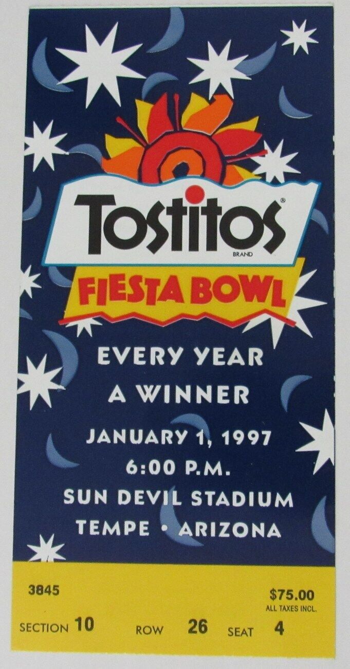Offered is a January 1, 1997 Fiesta Bowl College Football Game Ticket Stub Penn State vs. Texas at Sun Devil Stadium Tempe, Arizona. Penn State defeated Texas 38-15. Penn State outgained the Texas offense 425-360, 330-118 in the second half.