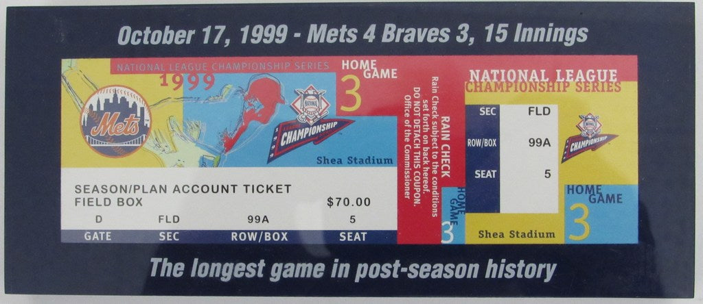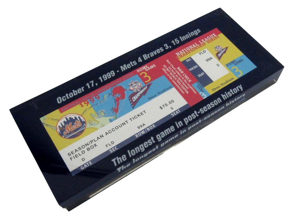 1999 NLCS Game 3 Full Ticket in Lucite Case Longest Post-season Game 181458