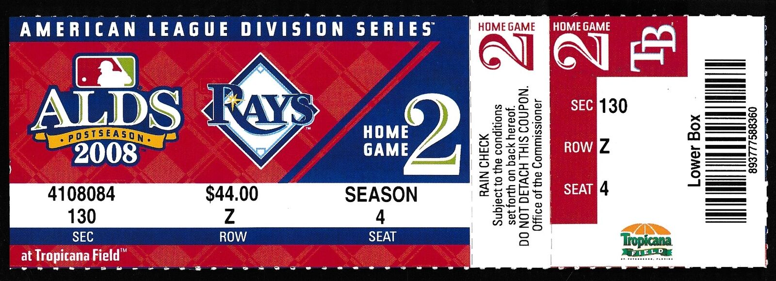 Offered is a 2008 ALDS Game 2 Full Ticket Tampa Bay Rays 6 vs. Chicago White Sox 2.