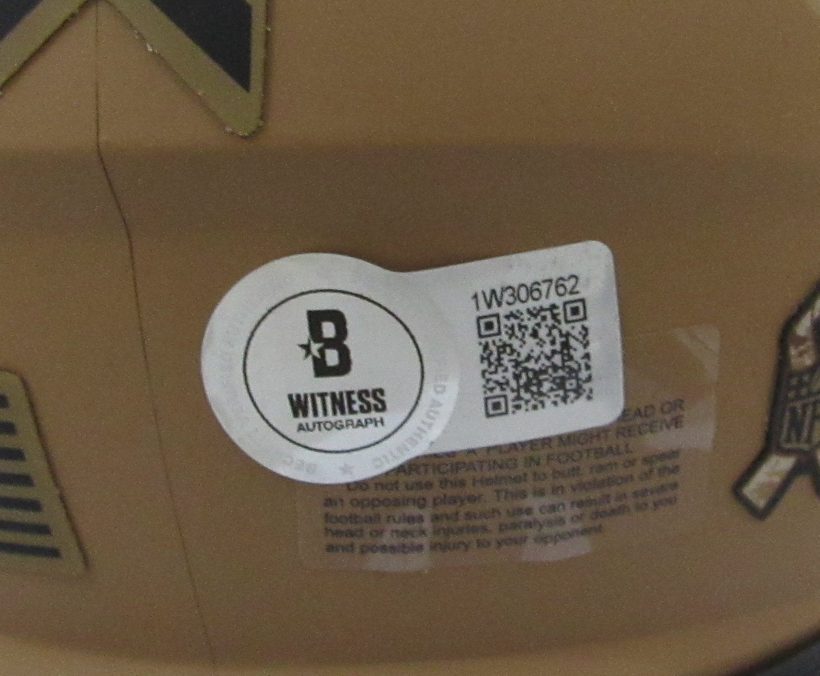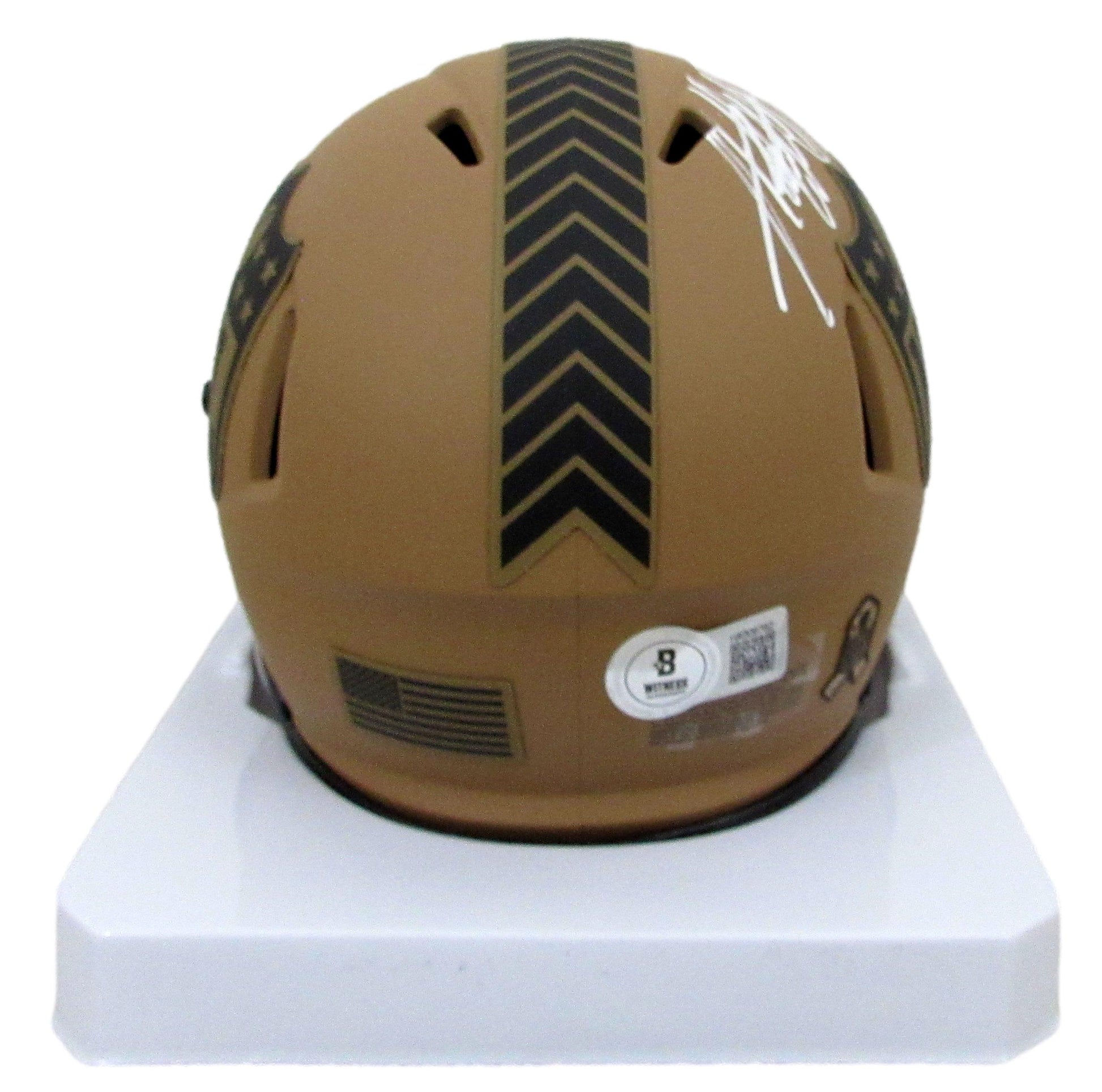 Offered is an Adrian Peterson Signed/Autographed Salute To Service Mini Football Helmet Minnesota Vikings. This helmet is authenticated by BAS/Beckett and includes their tamper-proof hologram sticker.