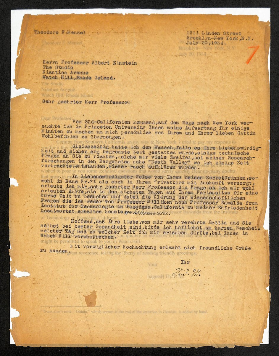 Addressed to Theodore Menzel, a fellow scientist and