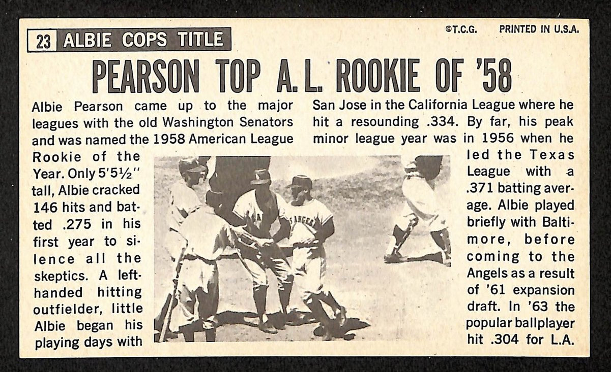 Offered is an Albie Pearson Signed/Autographed 1964 TOPPS Giants Card #23 Los Angeles Angels.