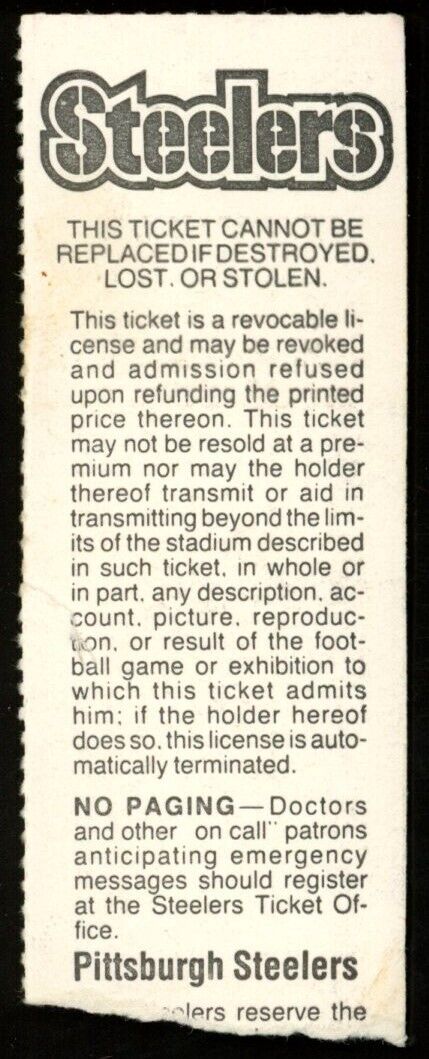 Offered is a August 14, 1988 Pittsburgh Steelers vs. Philadelphia Eagles Football Game Ticket Stub.