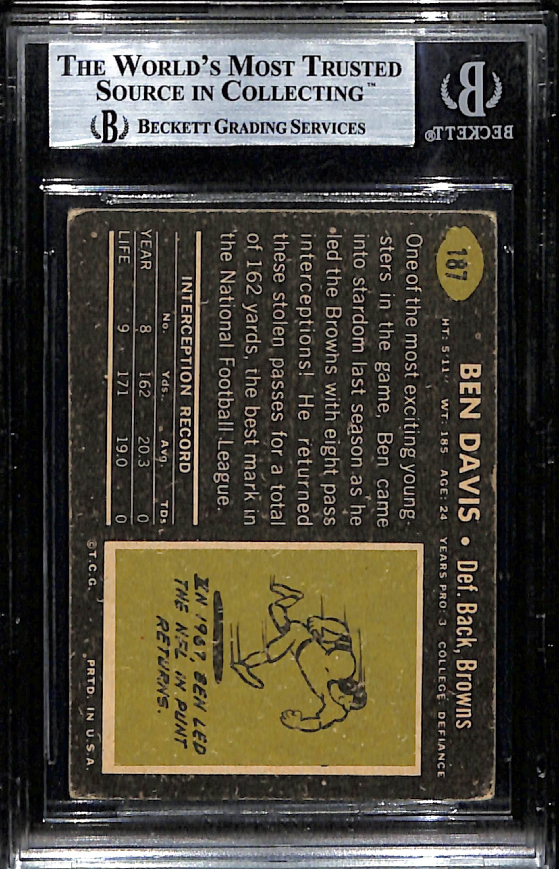 Offered is a Ben Davis Signed 1969 Topps Card #187 Cleveland Browns. This Card is authenticated by BAS/Beckett and is encapsulated in their tamper-proof plastic case.