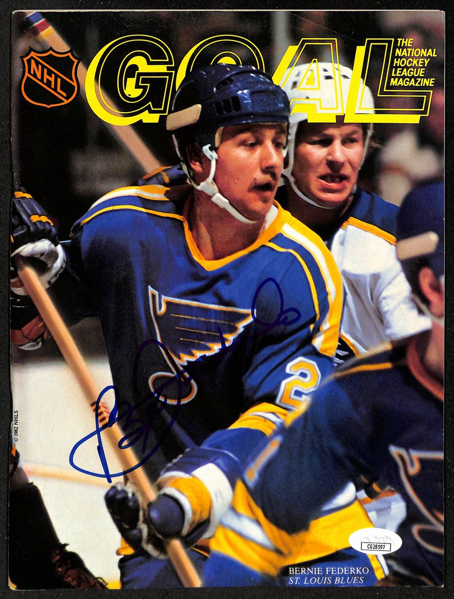 Offered for sale is a Bernie Federko St. Louis Blues Signed/Autographed Goal Magazine JSA 197281