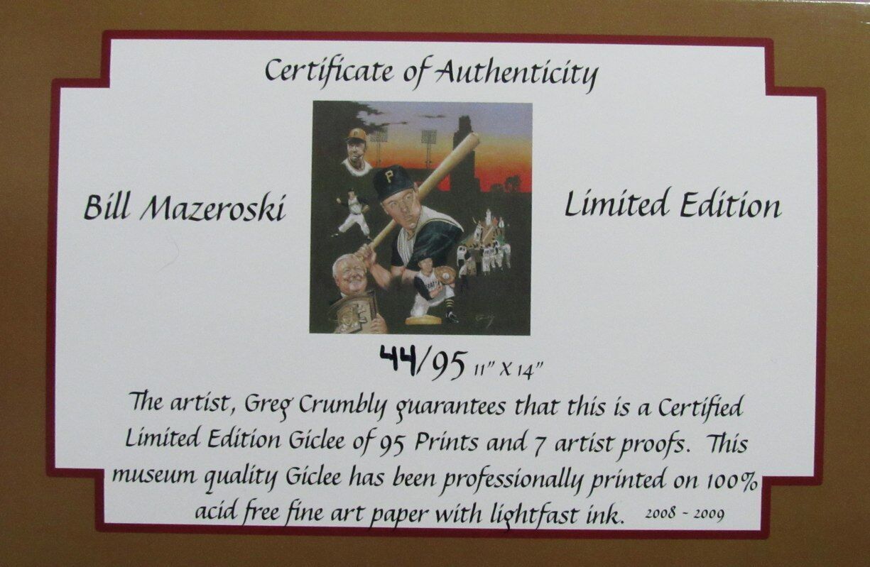 Offered is a Bill Mazeroski Autographed 11x14 Art Photo Matted Pittsburgh Pirates. The matted size is 13 inches x 20 inches. This photo is authenticated by JSA and includes their Tamper-proof Hologram Sticker and Certificate of Authenticity.