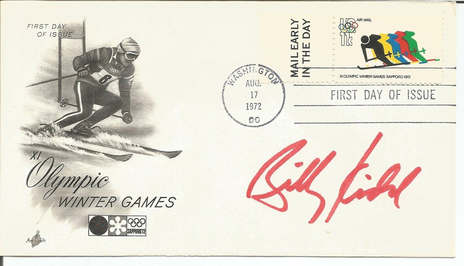 Billy Kidd Olympic Skier Signed/Autographed 1972 FDC First Day Cover JSA 151056