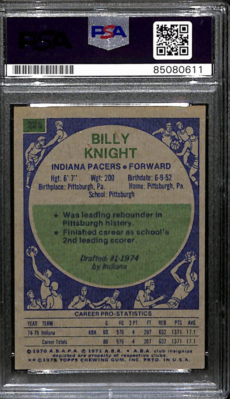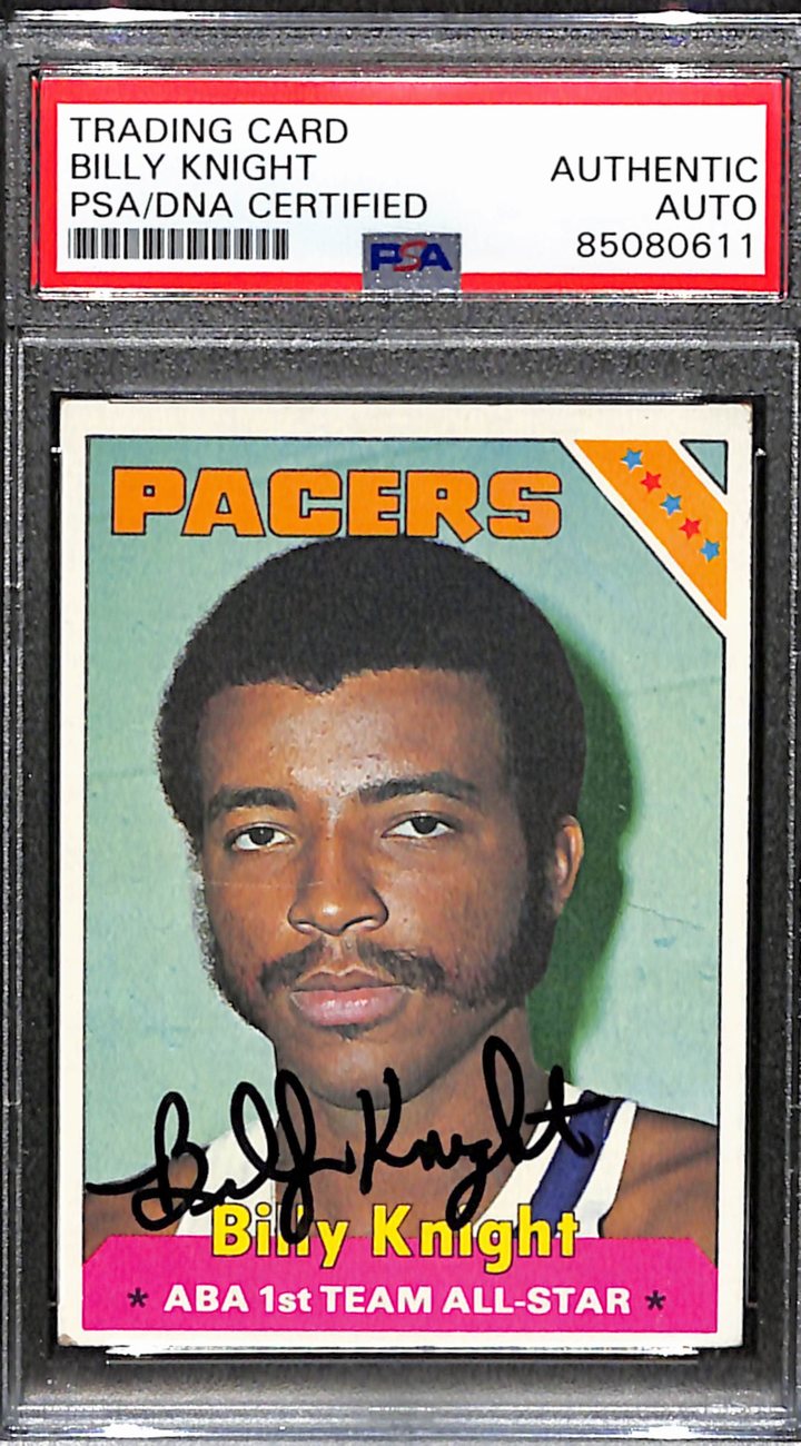 Offered is a Billy Knight Autographed 1975-76 Topps Card #228 Indiana Pacers 2. This Card is authenticated by PSA/DNA and is encapsulated in their tamper-proof plastic case.