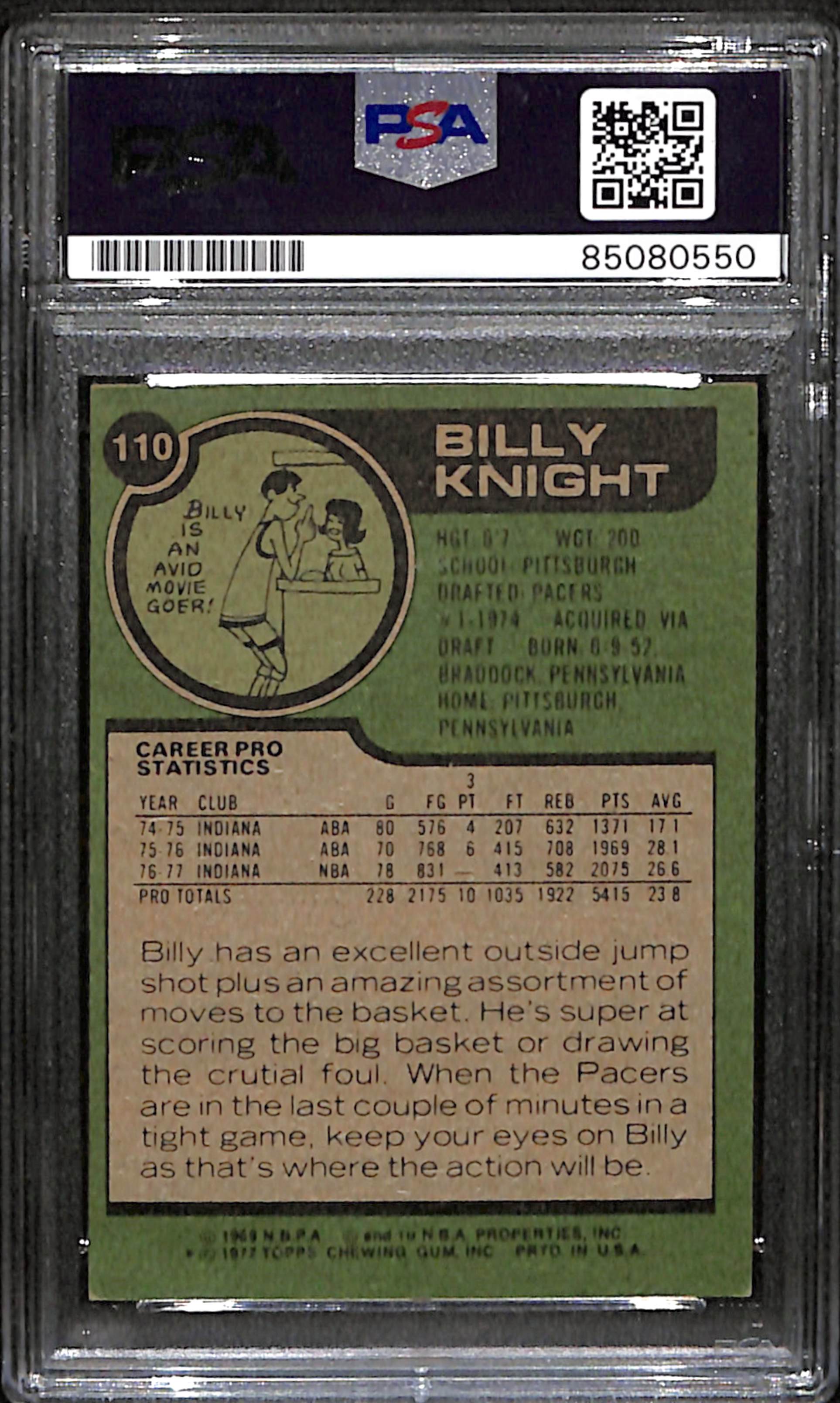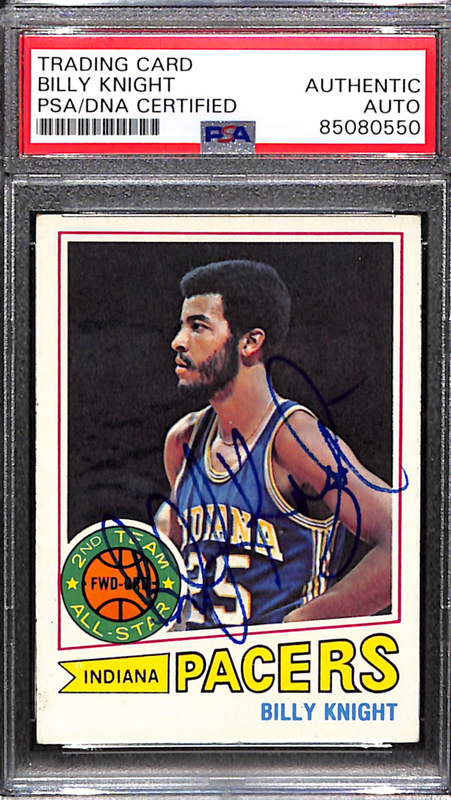 Offered is a Billy Knight Signed 1977 Topps Card #110 Indiana Pacers. This Card is authenticated by PSA/DNA and is encapsulated in their tamper-proof plastic case.