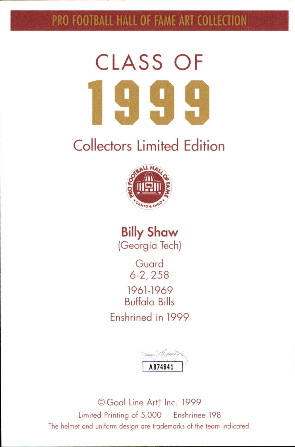 Offered is a Billy Shaw HOF Autographed/Inscribed "HOF 99" Goal Line Art GLAC Postcard Bills. This postcard is authenticated by JSA and includes their Tamper-proof Sticker and certificate of Authenticity.