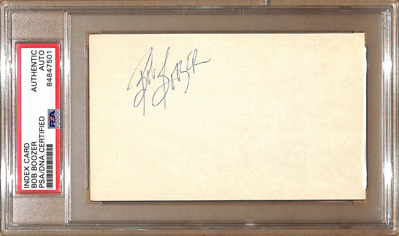 Offered is a Bob Boozer Autographed 3x5 Index Card Seattle Supersonics. This index card is authenticated by PSA/DNA and is encapsulatd in their tamper-proof plastic case.