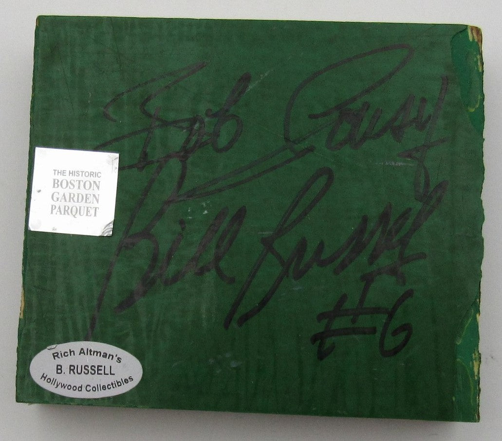 Offered is a Bob Cousy/Bill Russell Dual-Signed Boston Garden Parquet Floor 4x4 Board Boston Celtics. This wood board is authenticated by PSA/DNA and includes their tamper-proof hologram sticker.