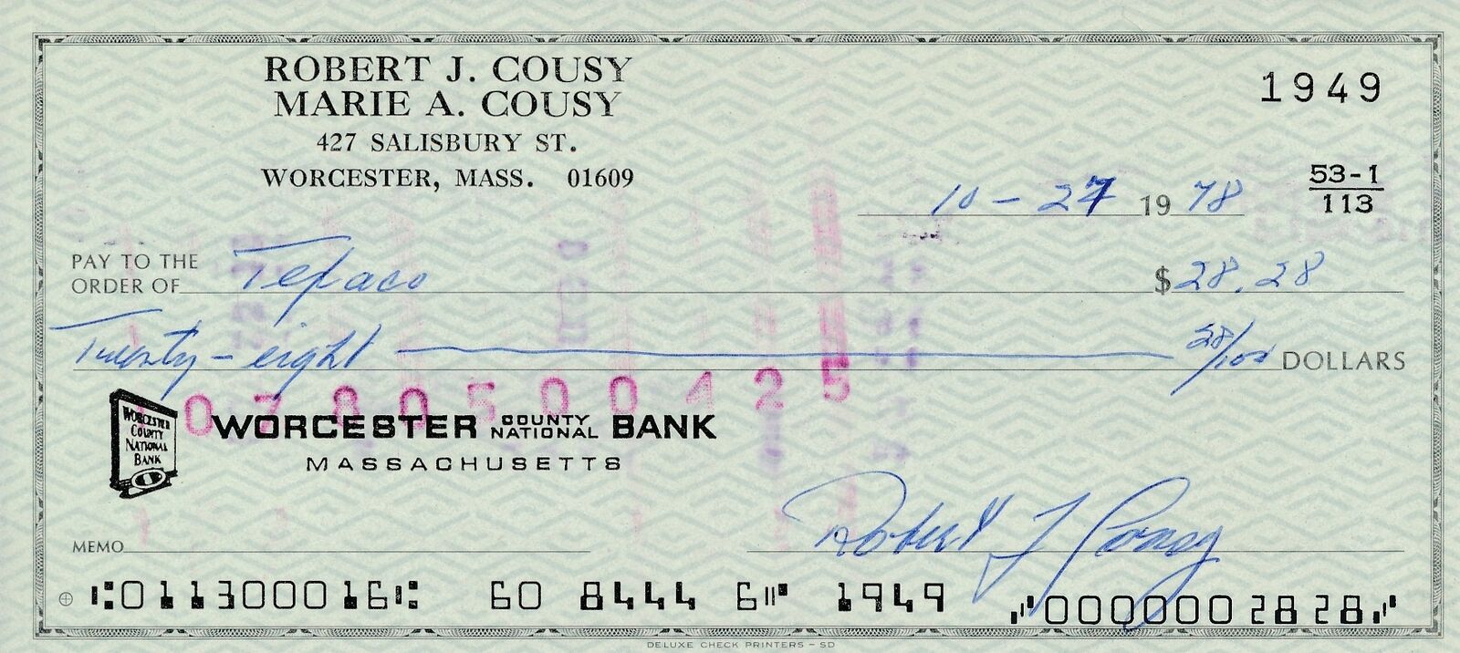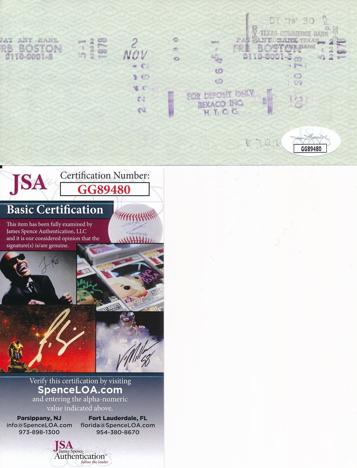 Bob Cousy HOF Boston Celtics Signed/Autographed 1978 Bank Check JSA 165563