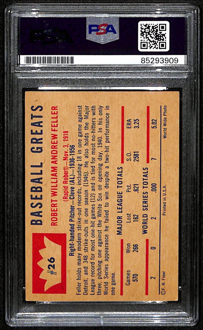 Offered is a Bob Feller HOF Signed/Autographed 1960 Fleer Baseball Greats Card #26 Cleveland Indians. This card is authenticated by PSA/DNA and is encapsulated in their tamper-proof plastic case.