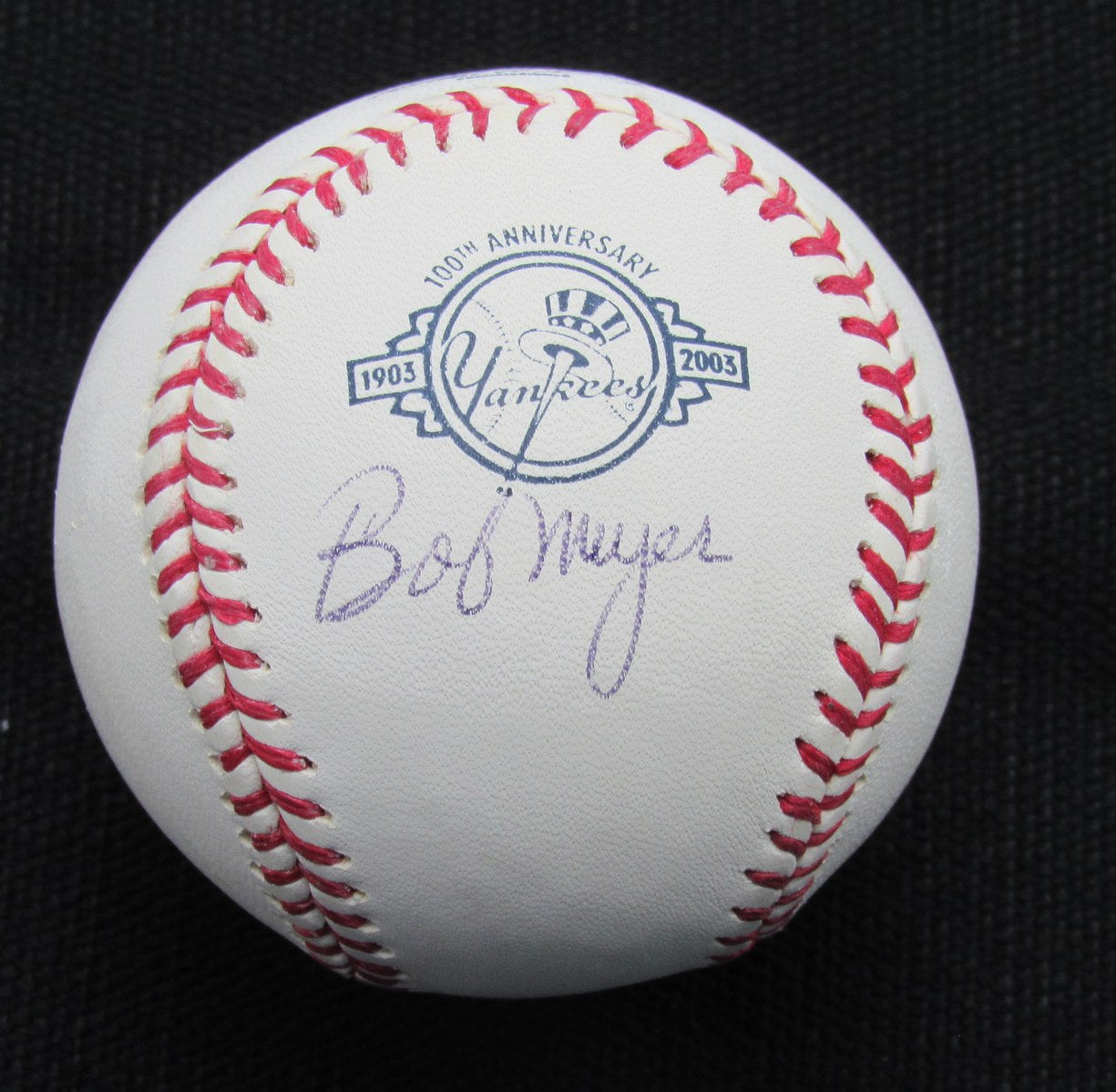 Offered is a Bob Meyer Signed/Auto Yankees 100th OML Baseball JSA 186950