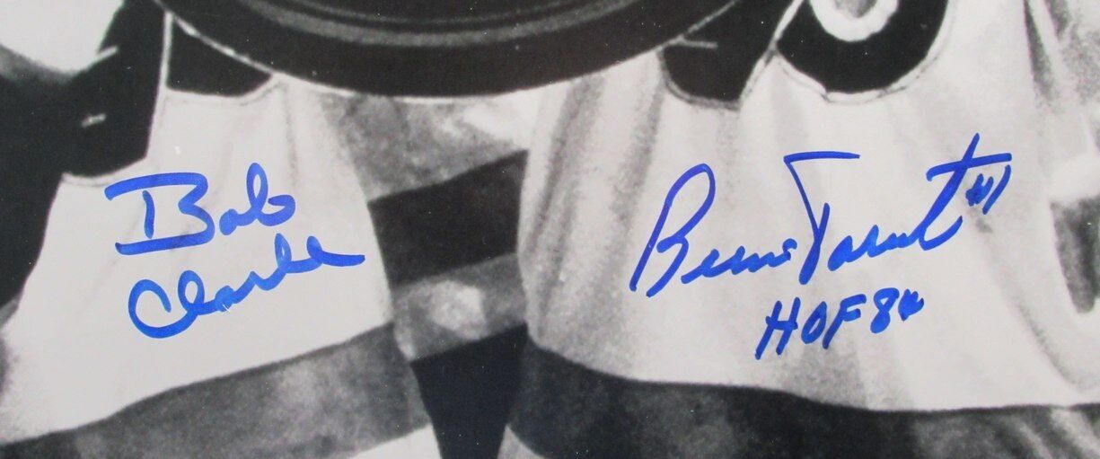 Offered is aBobby Clarke/Bernie Parent Flyers Signed 11x14 B/W Stanley Cup Photo JSA. Parent inscribed photo with his HOF year. Photo is signed in blue sharpie and is authenticated by JSA and includes their Tamper-proof Hologram Sticker and Certificate of Authenticity.