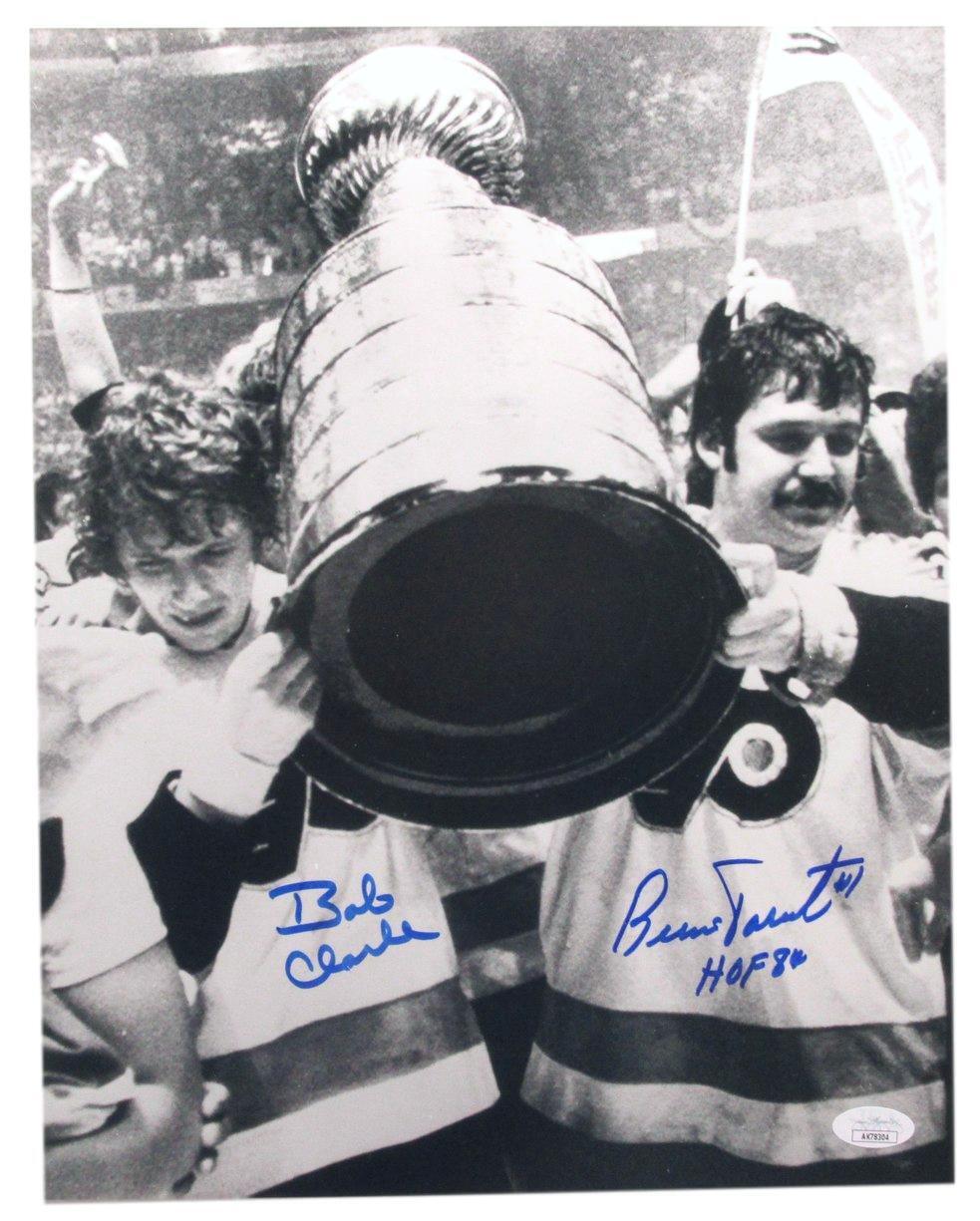 Bobby Clarke/Bernie Parent Flyers Signed 11x14 B/W Stanley Cup Photo JSA 180687