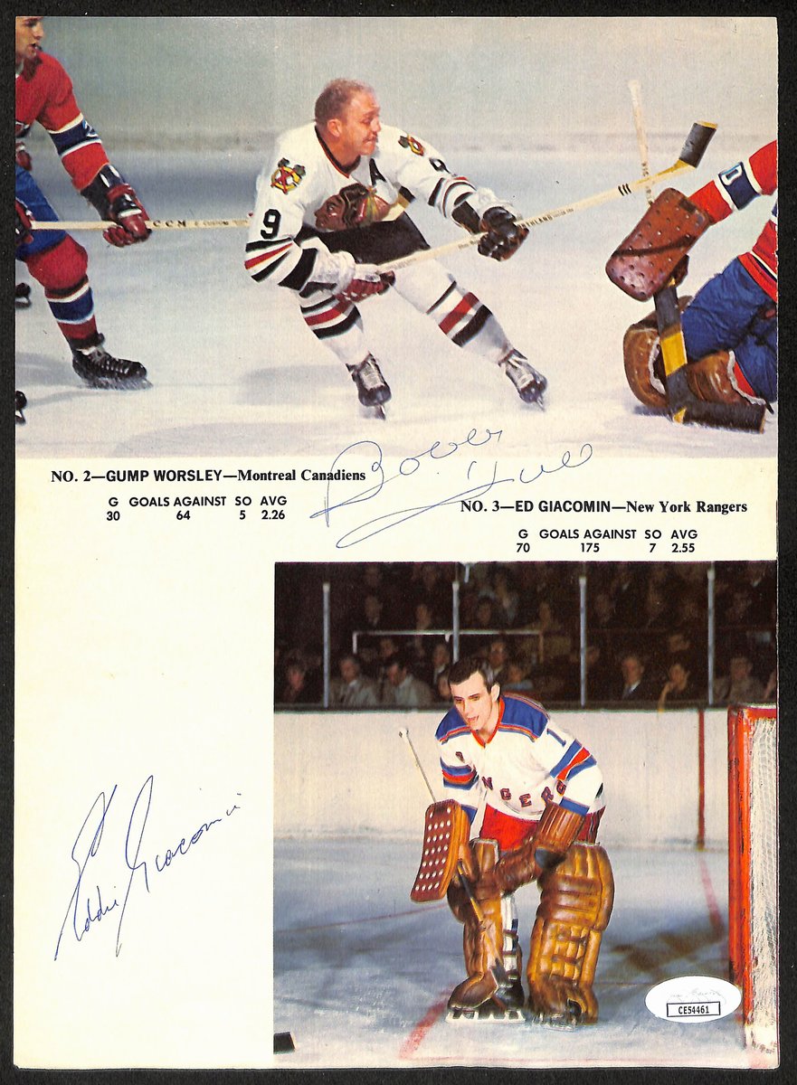 Bobby Hull/Eddie Giacomin Dual-Signed/Auto 8x10 Magazine Photo JSA 196660