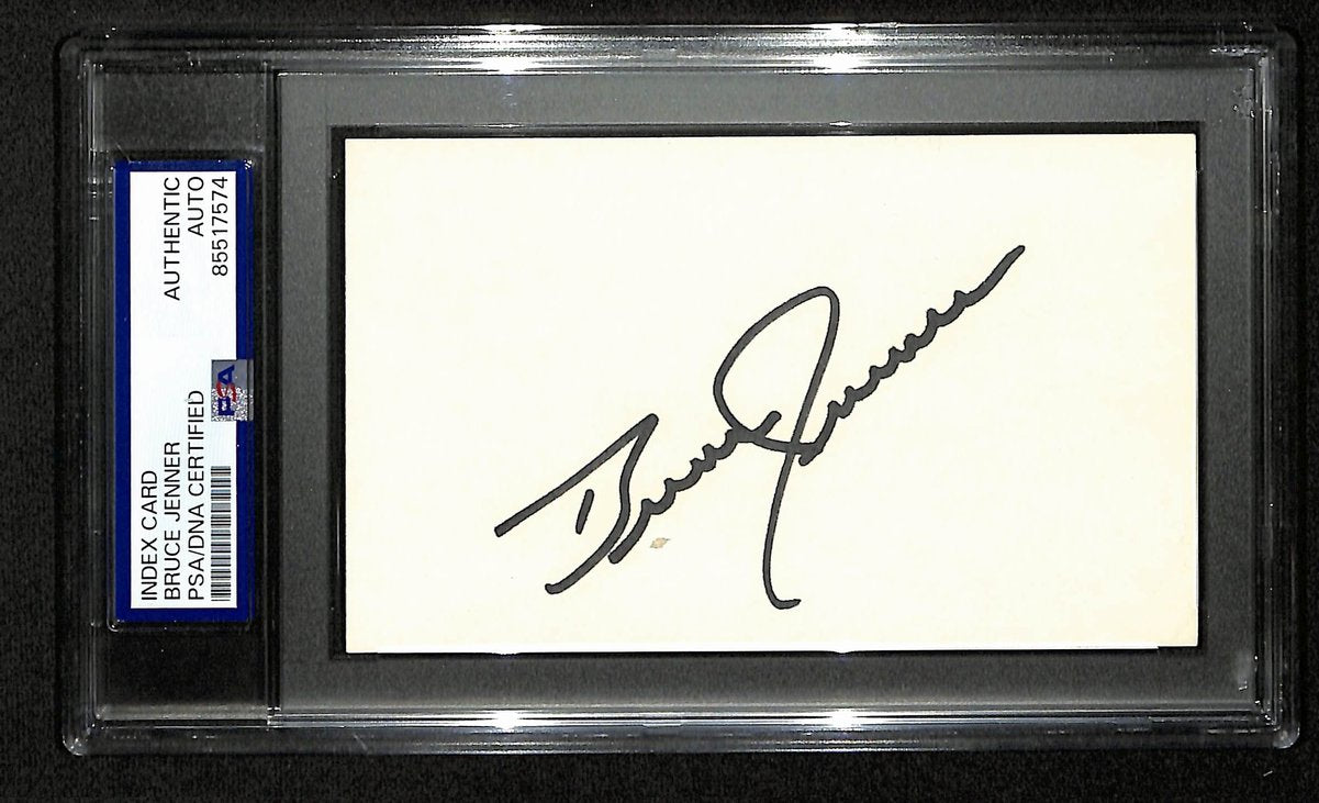 Offered is a Bruce Jenner Gold Medal Olympian Signed/Autographed 3x5 Index Card. This card is authenticated by PSA/DNA and is encapsulated in their tamper-proof acrylic case.