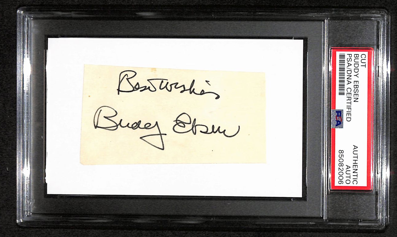Offered is a Buddy Ebsen Signed/Inscribed Cut on 3x5 Index Card Actor. This Cut is authenticated by PSA/DNA and is encapsulated in their tamper-proof plastic case.