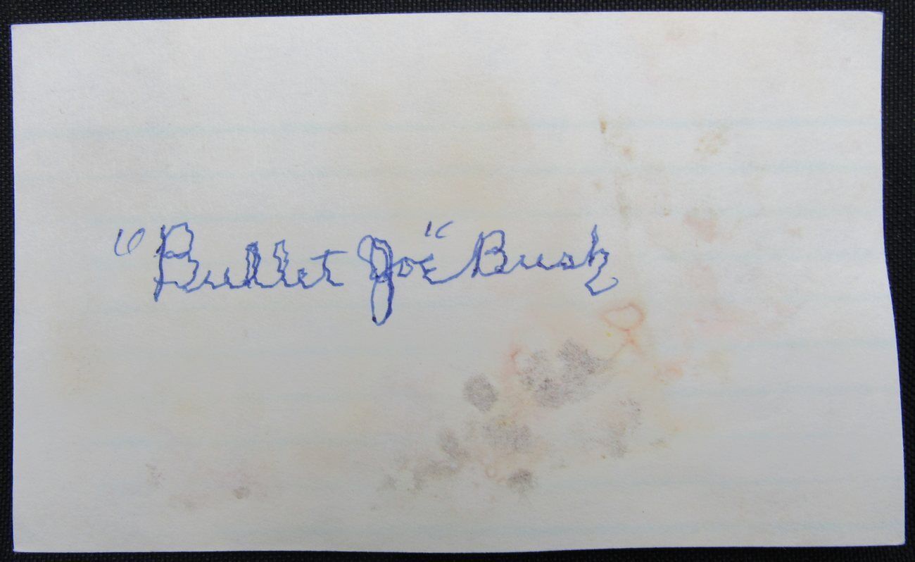 Bullet Joe Bush 1912-1917 Phila Athletics d.1974 Signed 3x5 Index Card