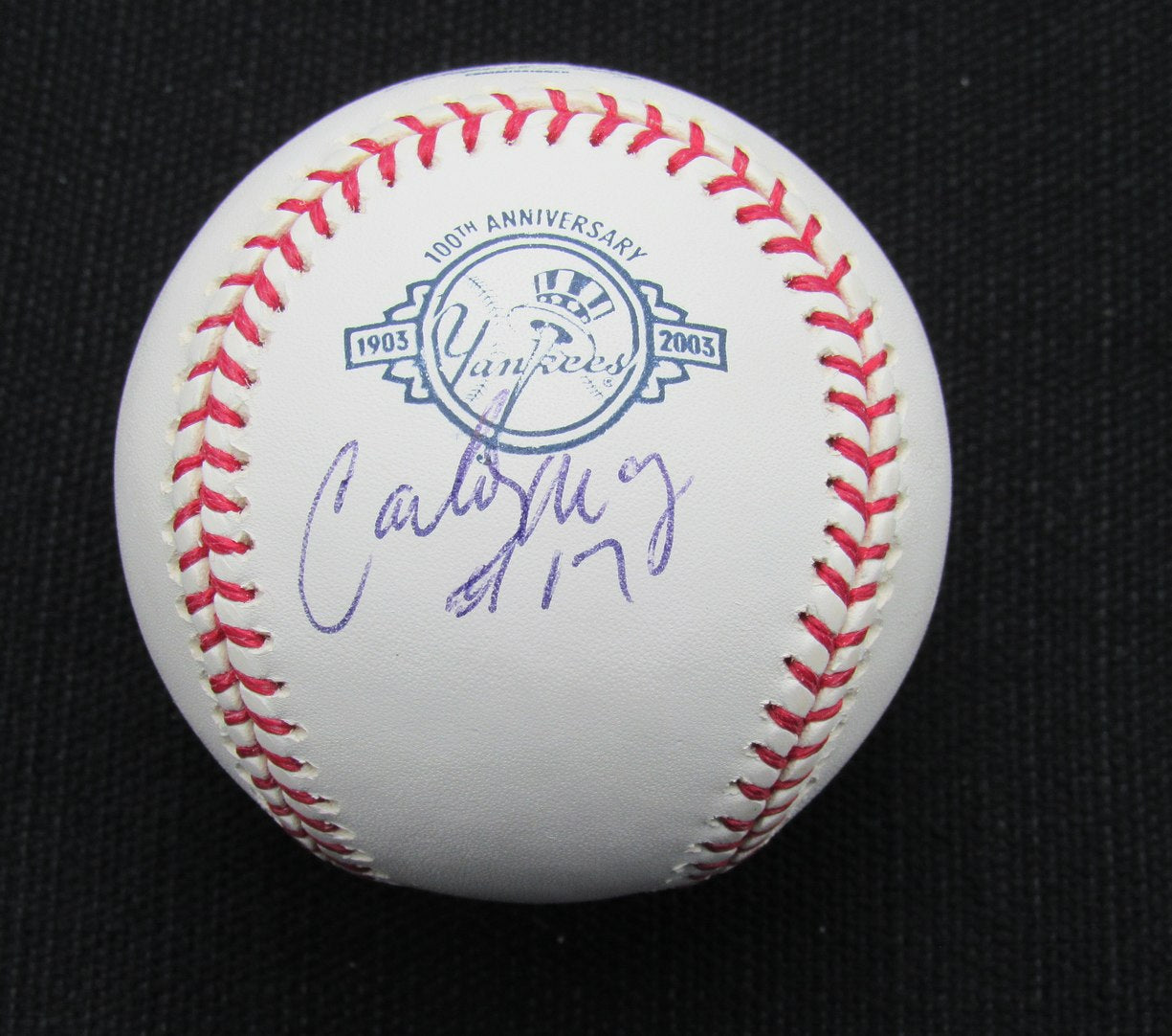 Offered is a Carlos May Signed/Auto Yankees 100th OML Baseball JSA Inscr 186617