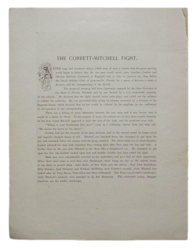 Offered is a Charlie Mitchell Boxer 1895 Boxing Gladiators 11x15 Supplement Poster. Known as the "Champion of England". IN 1894 Mitchell fought Corbett for world heavyweight championship and lost by TKO. 11 x 15 inches in size. Has a bioligraphy of the fighter on th back. VERY RARE FROM 1895 made by the Has a bioligraphy of the fighter on th back. VERY RARE FROM 1895 made by the Athletic Publishing Company