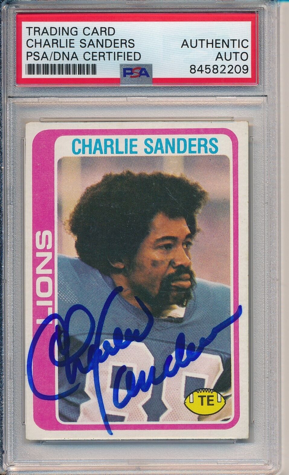 Offered is a Charlie Sanders HOF Signed/Auto 1978 TOPPS Card #344 Detroit Lions. This card is authenticated by PSA/DNA and is Encapsulated in their Tamper-proof Case.