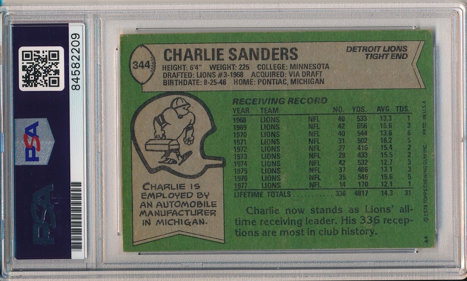 Charlie Sanders HOF Signed/Auto 1978 TOPPS Card #344 Lions PSA/DNA