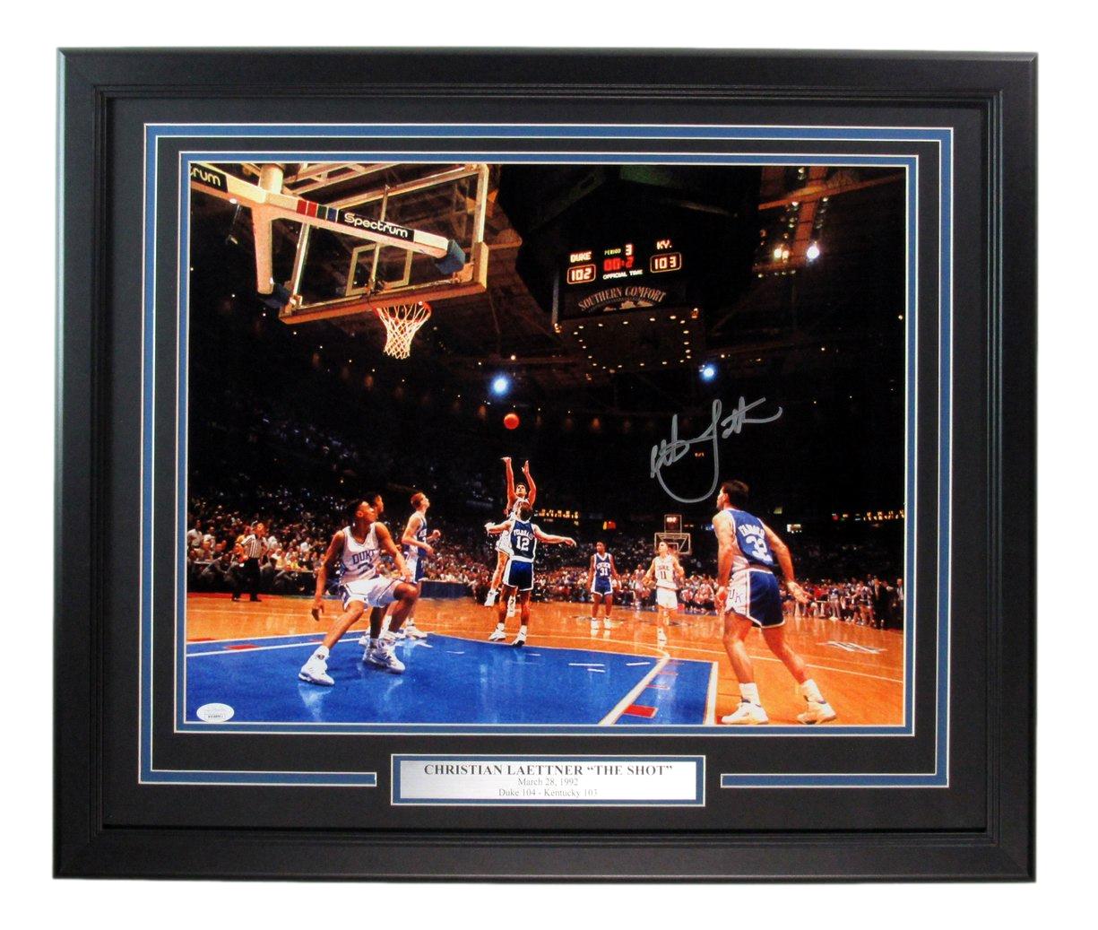 Offered is a Christian Laettner Signed/Autographed 16x20 Photo "The Shot" Duke Framed. The outer frame size is 26 inches x 22 inches. This photo is authenticated by JSA and includes their Tamper-proof Hologram Sticker and Certificate of Authenticity.