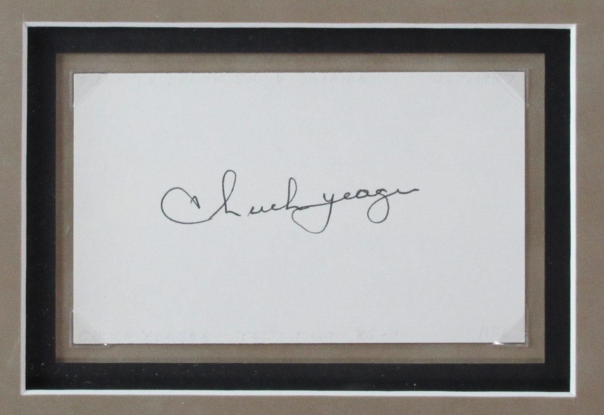 Chuck Yeager Signed 3x5 Index Card with Photo Collage Framed 187171