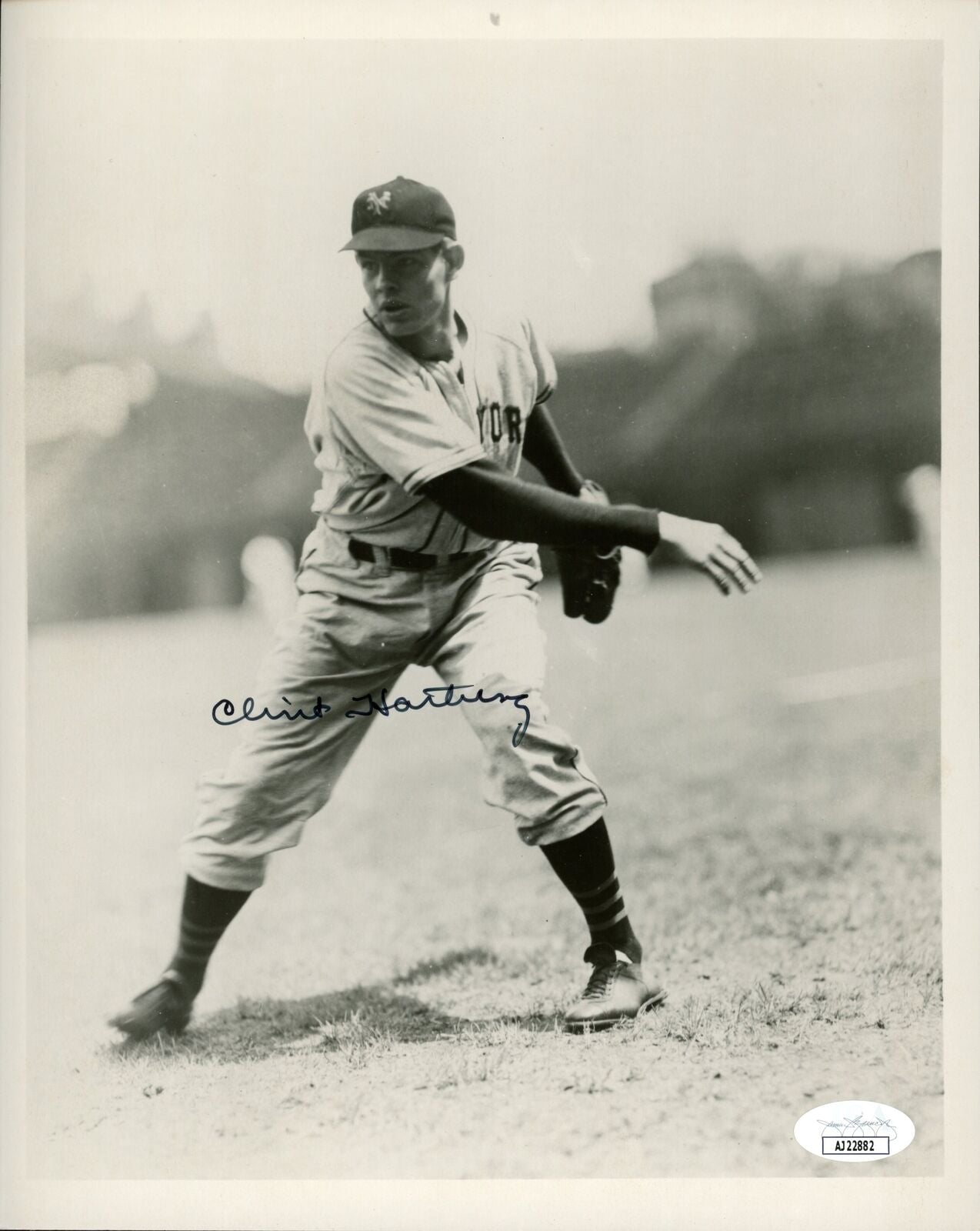 Offered is a Clint Hartung Autographed 8x10 Photo New York Giants. This photo is authenticated by JSA and includes their Tamper-proof Sticker and Certificate of Authenticity.