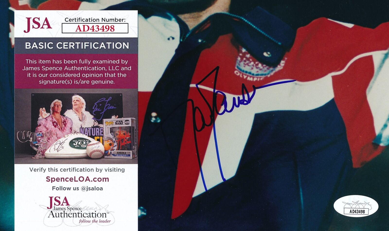 Offered is a Dan Jansen Autographed 8x10 Photo Olympic USA Speed Skating. This photo is authenticated by JSA and includes their Tamper-proof Sticker and Certificate of Authenticity.