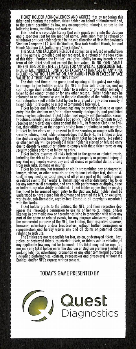 Offered is a December 17, 2017 Full Ticket New York Giants vs. Philadelphia Eagles Foles 4 TD Passes.