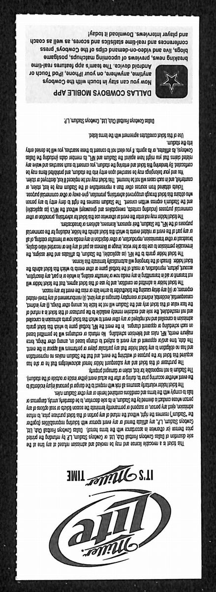 December 29, 2013 Full Ticket Cowboys vs. Eagles Win NFC East Title 201873