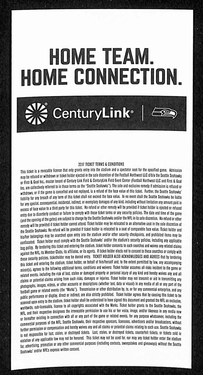 Offered is a December 3, 2017 Full Ticket Philadelphia Eagles vs. Seattle Seahawks.