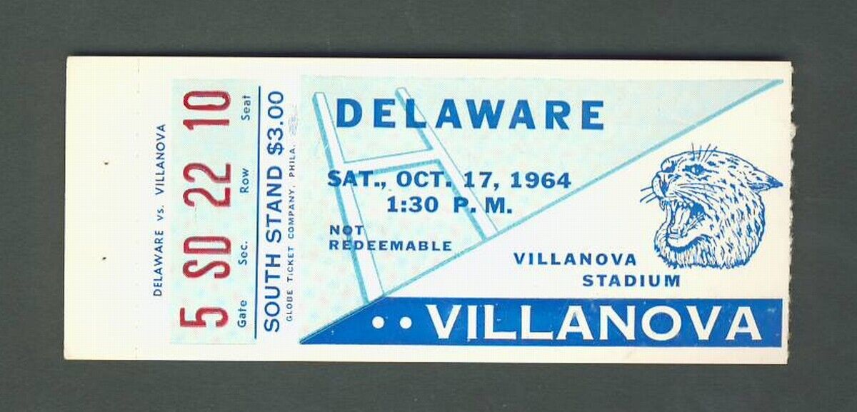 Delaware vs Villanova Ticket Stub 10-17-1964 142220