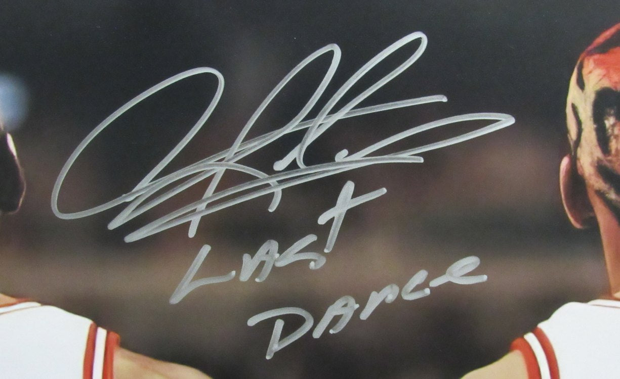 Offered is a Dennis Rodman HOF Signed/Inscribed "Last Dance" 16x20 Photo with Michael Jordan Chicago Bulls. This Photo is authenticated by BAS/Beckett and Includes their Tamper-proof Hologram Sticker.