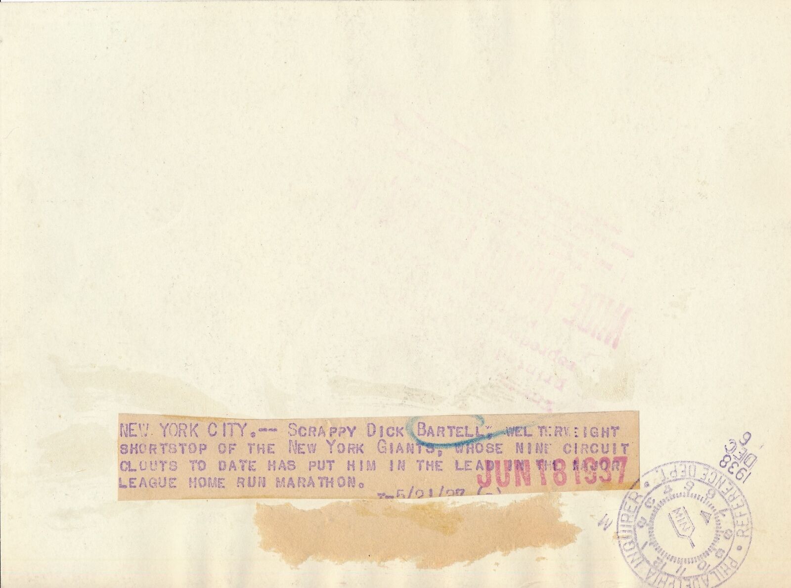 Offered is a Dick Bartell 6x8 B/W 1937 Press Wire Photo New York Giants.
