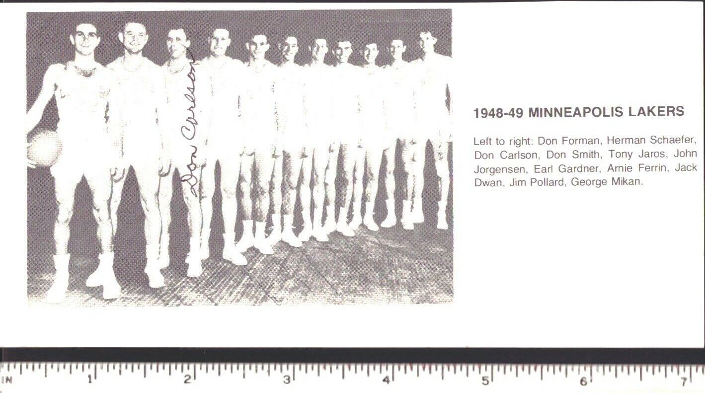 Don Carlson 1949 Minneapolis Lakers d.2004 Signed 7x3 Team Photo 151207