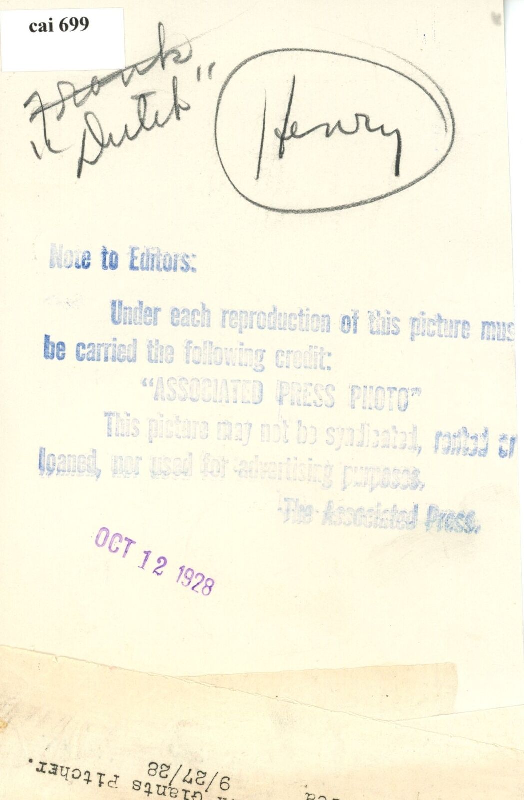 Offered is a Dutch Henry 5x7 B/W 1928 Press Wire Photo New York Giants.
