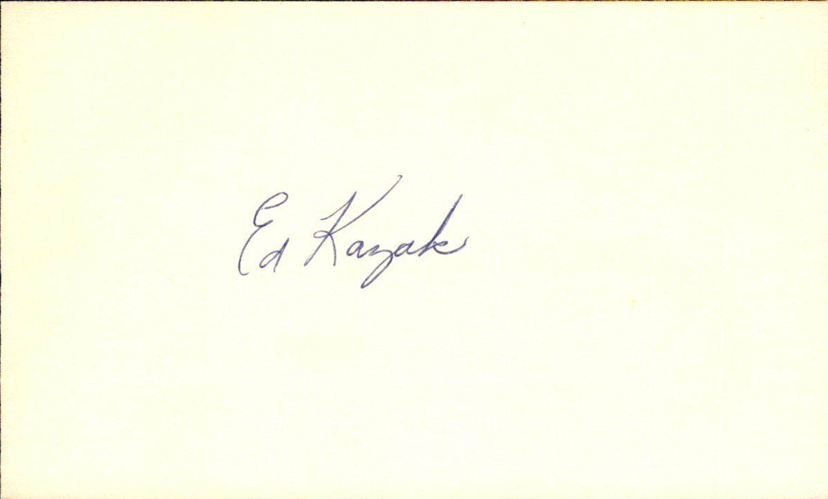 Ed Kazak Cardinals/Reds d.1999 Signed/Autographed 3x5 Index Card Seller guarantees that this signature will pass any third party authentication service such as JSA or PSA/DNA.