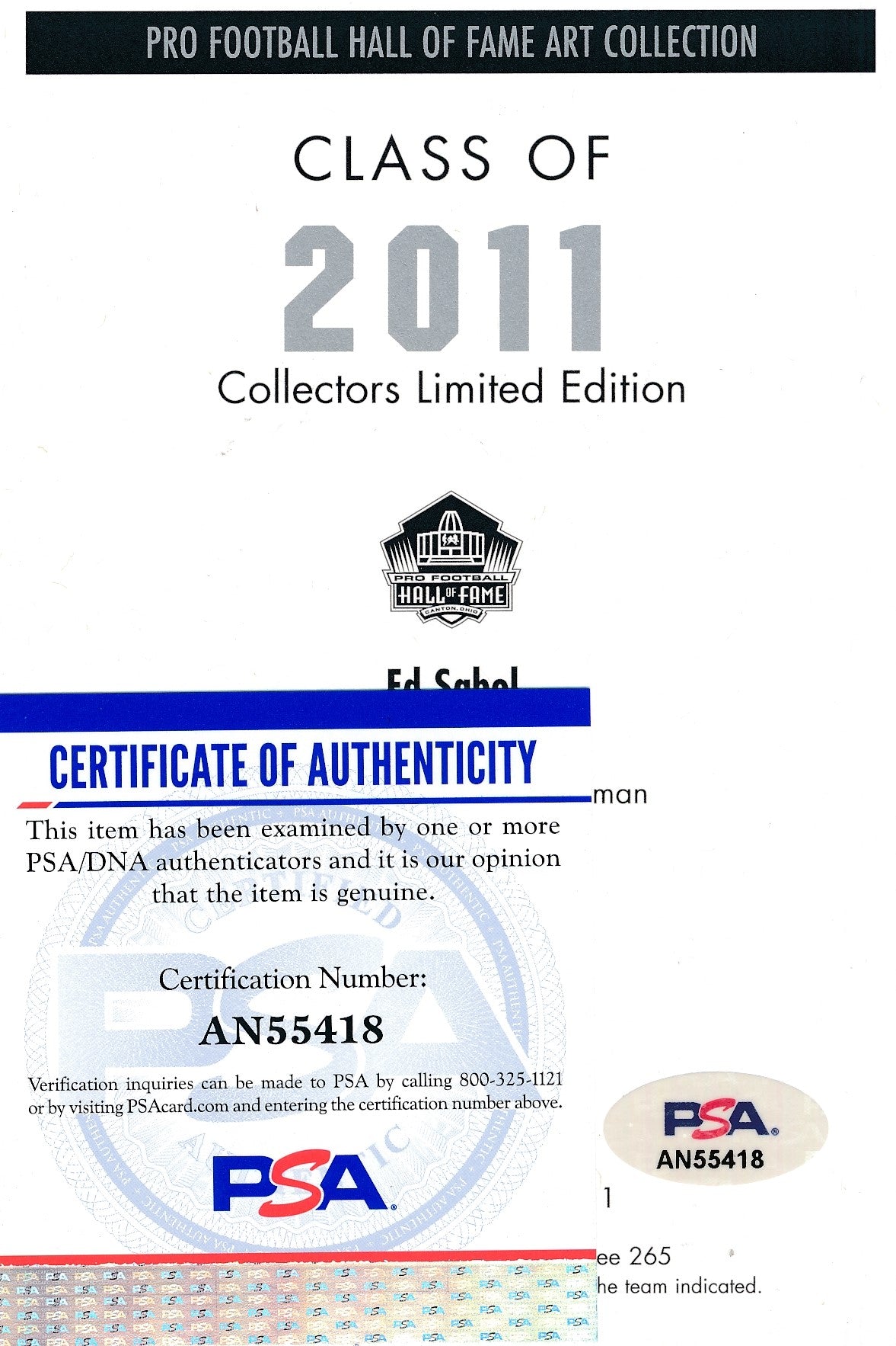 Offered is an Ed Sabol HOF NFL Films Signed 2011 GLAC/Goal Line Art Postcard. This Postcard is authenticated by PSA/DNA and Includes their Tamper-proof Hologram Sticker and Certificate of Authenticity.