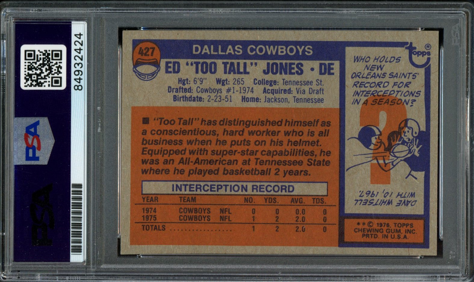 Ed "Too Tall" Jones Signed/Auto 1976 Topps Card #427 Cowboys PSA/DNA 188023