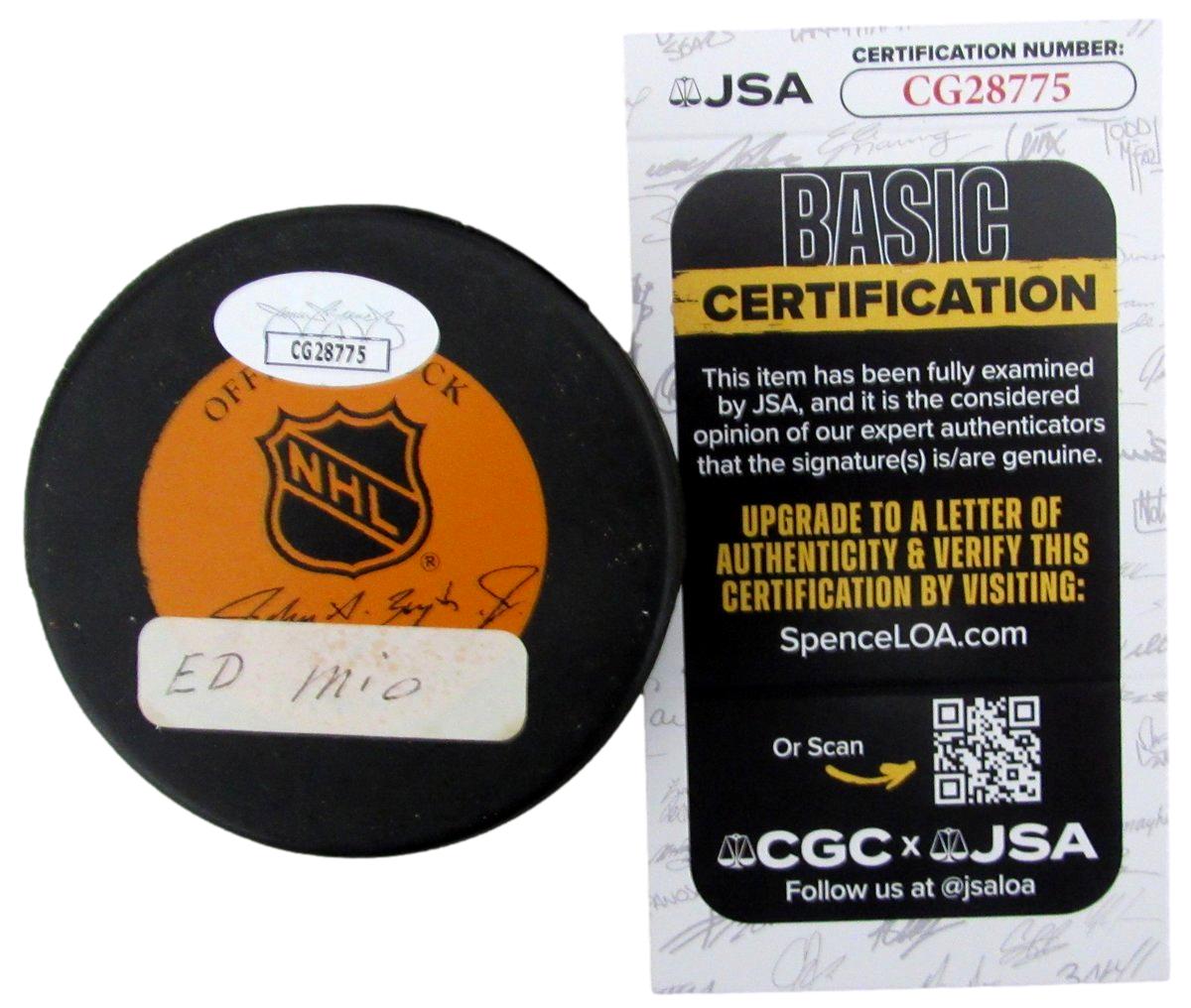 Offered is an Eddie Mio Signed/Autographed Detroit Red Wings Hockey. This puck is authenticated by JSA ad includes their Tamper-proof Hologram Sticker and Certificate of Authenticity.