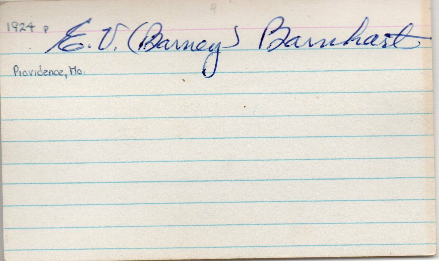 Edgar Barnhart d.1984 St. Louis Browns Signed 3x5 Index Card 145603
