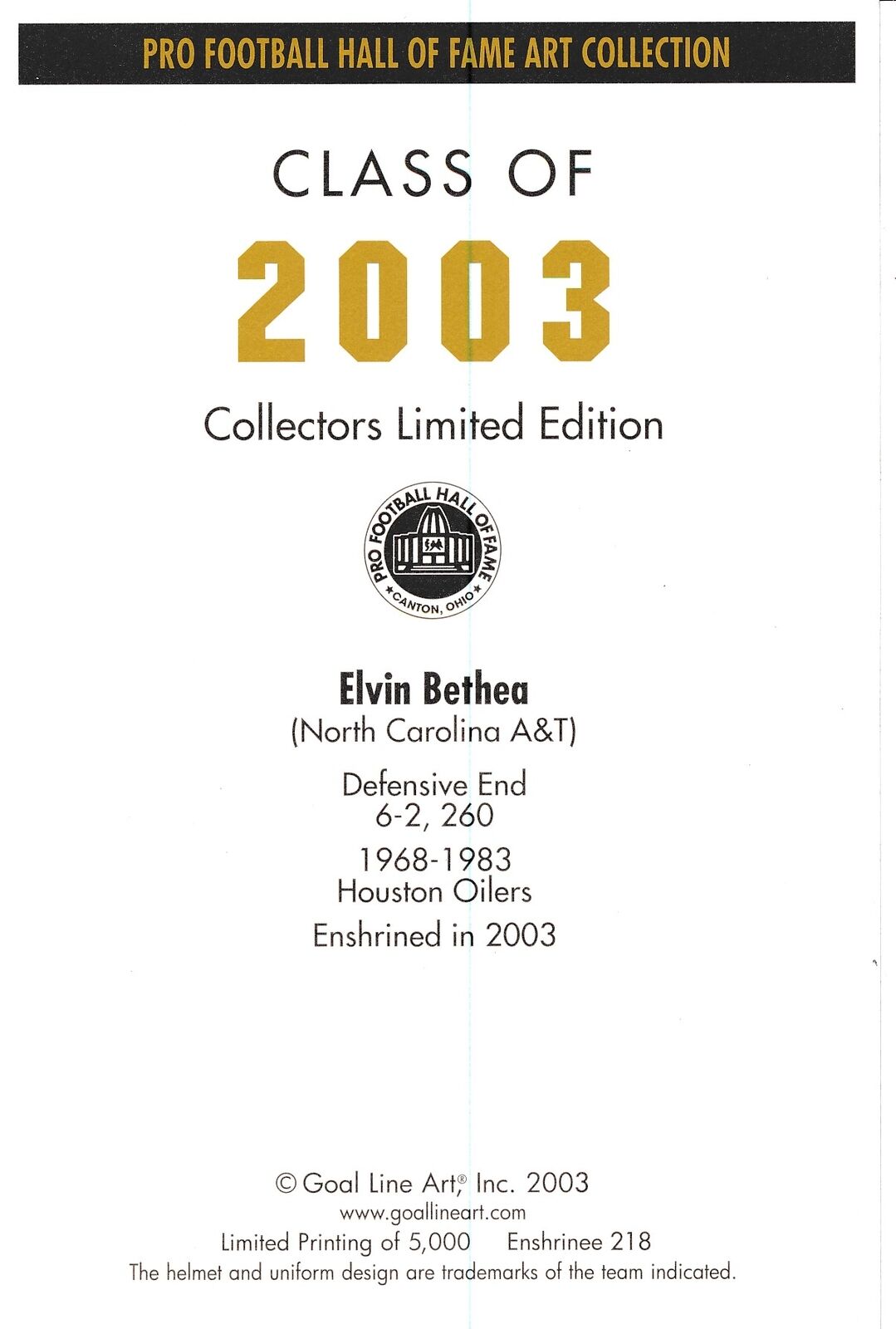 Offered is an Elvin Bethea HOF Houston Oilers Signed/Inscribed "HOF 03" Goal Line Art GLAC Postcard.
