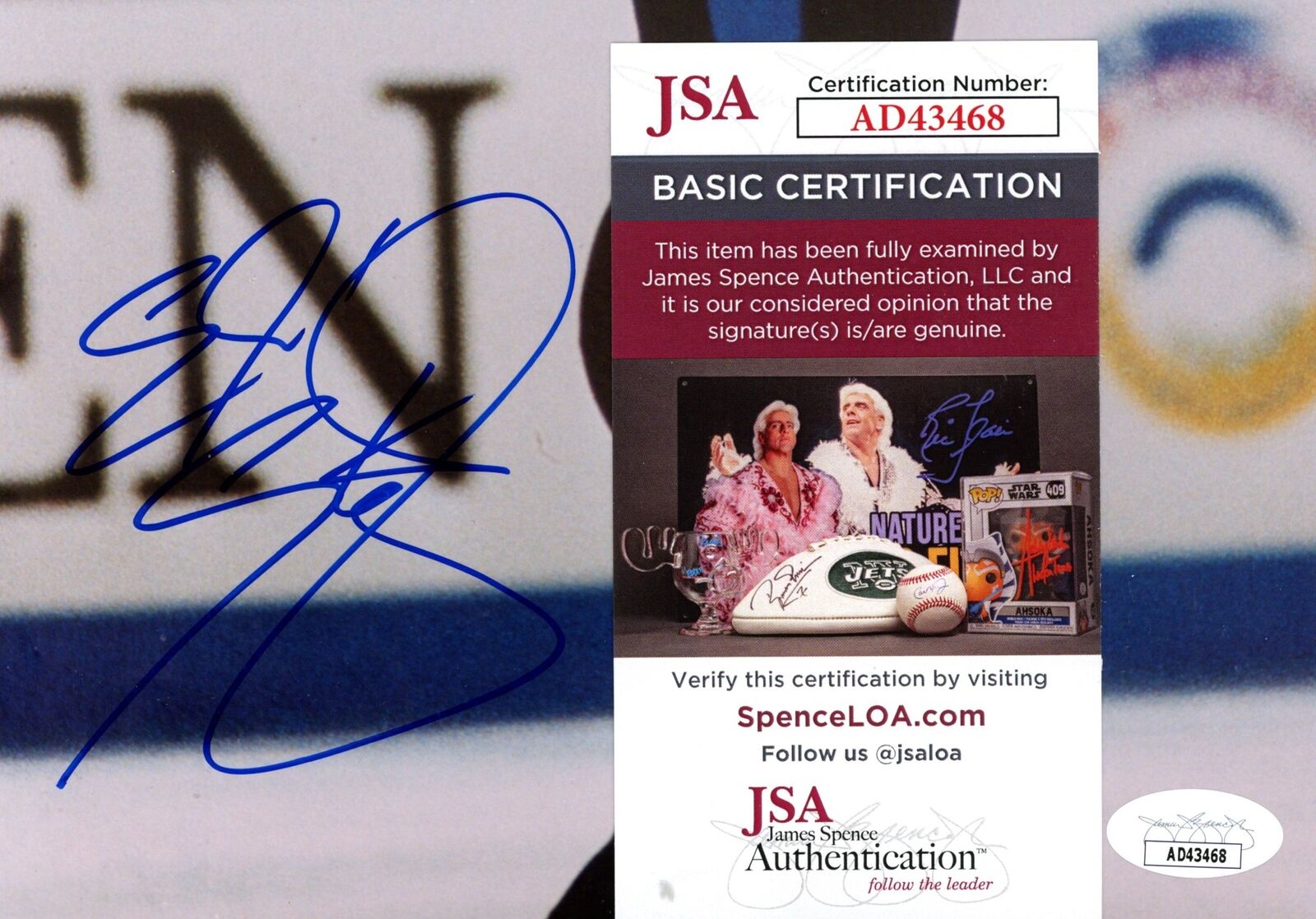 Offered is an Elvis Stojko Autographed 8x10 Photo Olympic Canada Figure Skating. This photo is authenticated by JSA and includes their Tamper-proof Sticker and Certificate of Authenticity.