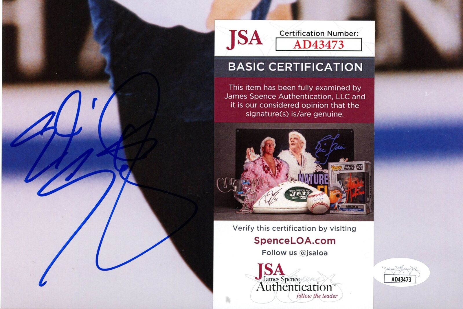 Offered is an Elvis Stojko Autographed 8x10 Photo Olympic Canada Figure Skating. This photo is authenticated by JSA and includes their Tamper-proof Sticker and Certificate of Authenticity.